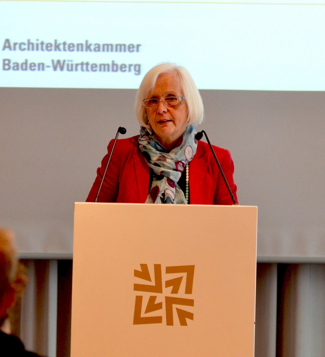 Gudrun Heute-Blum vom Städtetag Baden-Württemberg zeigte in Vertretung der Schirmherrin des Wettbewerbs, Barbara Bosch, die politischen Herausforderungenbeim Wohnungsbau auf: das "enge Korsett", das Planern durch Regularien wie "Innenraumentwicklung statt Außenentwicklung" oder Artenschutz auf Umlandflächen angelegt werde, sowie die damit einhergehenden Zielkonflikte. Die schwierige Flächenauszeichnung und die Baukosten schlagen sich später in der Miete nieder, die vielerorts mittlerweile bei zehn bis elf Euro pro Quadratmeter liegt. Neben dem sozialen Wohnungsbau und dem Wohnungsbau für "gut Betuchte" müsse vor allem für die Leute "mit schmalem Geldbeutel" etwas getan werden, die sich selbst eine Wohnung leisten könnten, wenn die Mieten bezahlbar wären.