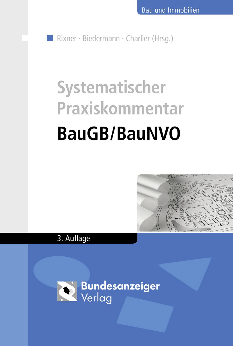 Systematischer Praxiskommentar BauGB/BauNVOFlorian Rixner, Robert Biedermann, Jacqueline Charlier (Hrsg.)Bundesanzeiger Verlag,3. aktualisierte Auflage 2018,165 x 244 mm,1785 Seiten, Hardcover, ISBN: 978-3-8462-0670-6,139,00 Euro