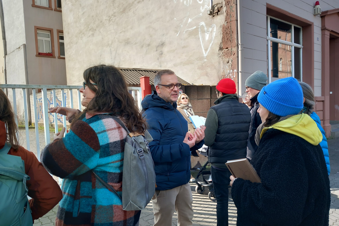 „Lückenfüller – Architektur zukunftsfähig gestalten“: unter diesem Titel erkundete eine Gruppe von Lehrkräften unter Anleitung des Architekten Daniel Henecka eine Baulücke in der Kaiserstraße, Karlsruhe. Beim Workshopteil im Architekturschaufenster setzten sie das Thema in konkrete Unterrichtsideen um.