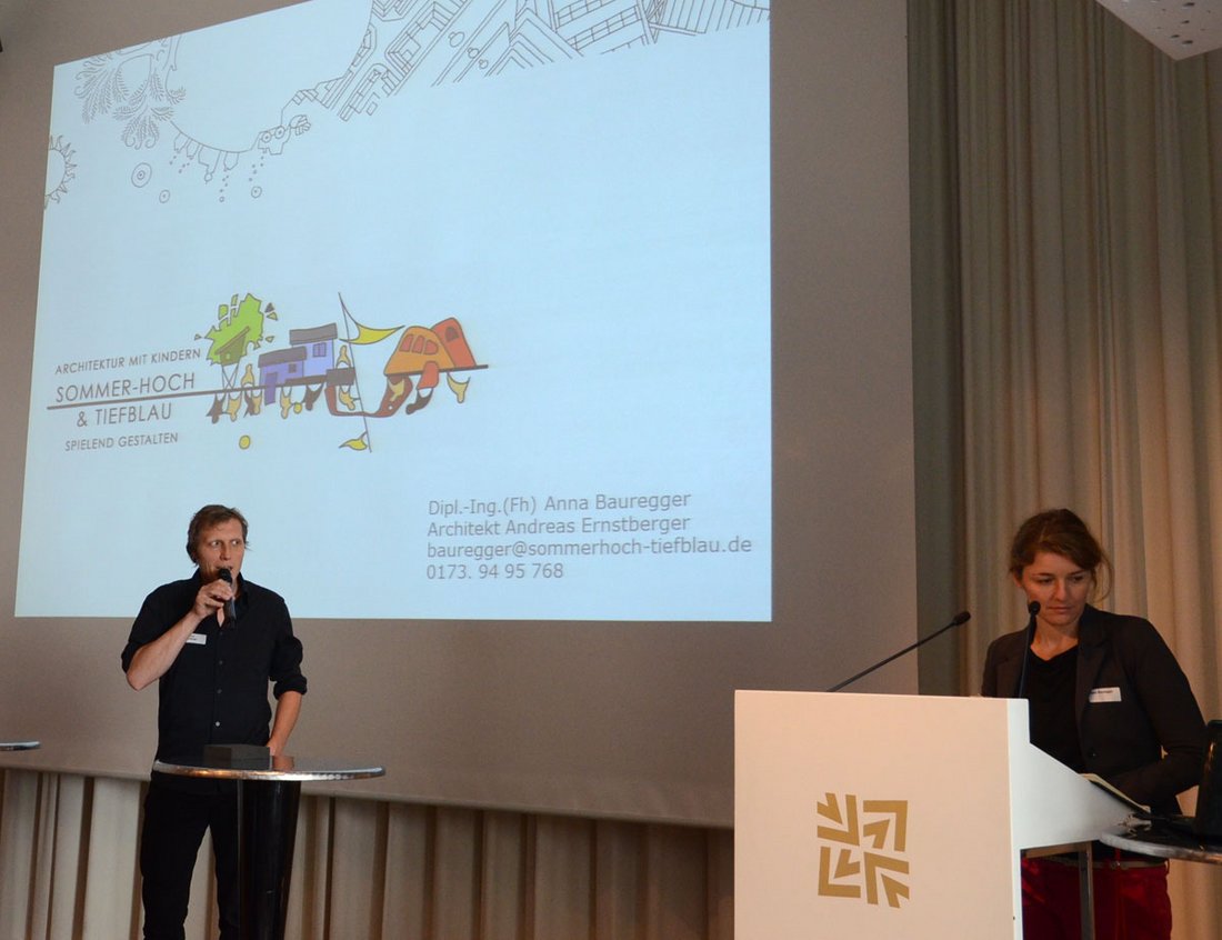 Was zunächst fast als Hobby begann, hat zwischenzeitlich einen hohen Grad an Professionalisierung erlangt: Seit 2000 auf die Architekturvermittlung für Kinder und Jugendliche spezialisiert, entwickeln Anna Bauregger und Andreas Ernstberger gemeinsam Unterrichtsmaterialien, Schulprojekte, Ferienprogramme, Firmenevents, Fortbildungen und Fachliteratur. "Es wird nicht einfach etwas erzählt", erläuterte Ernstberger die Methodik, vielmehr gehe es darum, bei Architekturprojekten mit den Kindern ins Gespräch zu kommen. Wie das funktionieren kann, zeigte er beispielhaft im direkten Austausch mit dem Publikum.