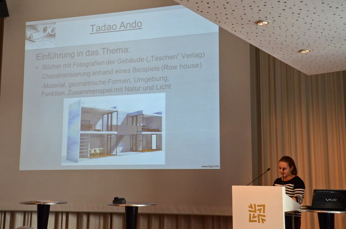 Und was kommt von alledem bei der Zielgruppe an? Die Schülerin Paula Friedrichs berichtete von ihren Erfahrungen mit baukulturellen Themen. Eher ernüchternd war ihr Eingangssatz: "Mein Leistungskurs Bildende Kunst ist das einzige Fach, in dem ich Architektur kennengelernt habe." Doch wie fundiert es dort stattfand, ließ die Zuhörer aufhorchen. Am Beispiel von Tadao Ando lernten die Schüler, sich an das Thema heranzutasten und dessen Vielschichtigkeit zu ermessen. Praktische Arbeitsaufträge förderten ihre Kreativität, Besuche in einem Architekturbüro und in der Weißenhofsiedlung eröffneten weitere Blickwinkel. Paula resümierte, dass sie "umfassende Hintergründe zur Architektur" bekommen habe.