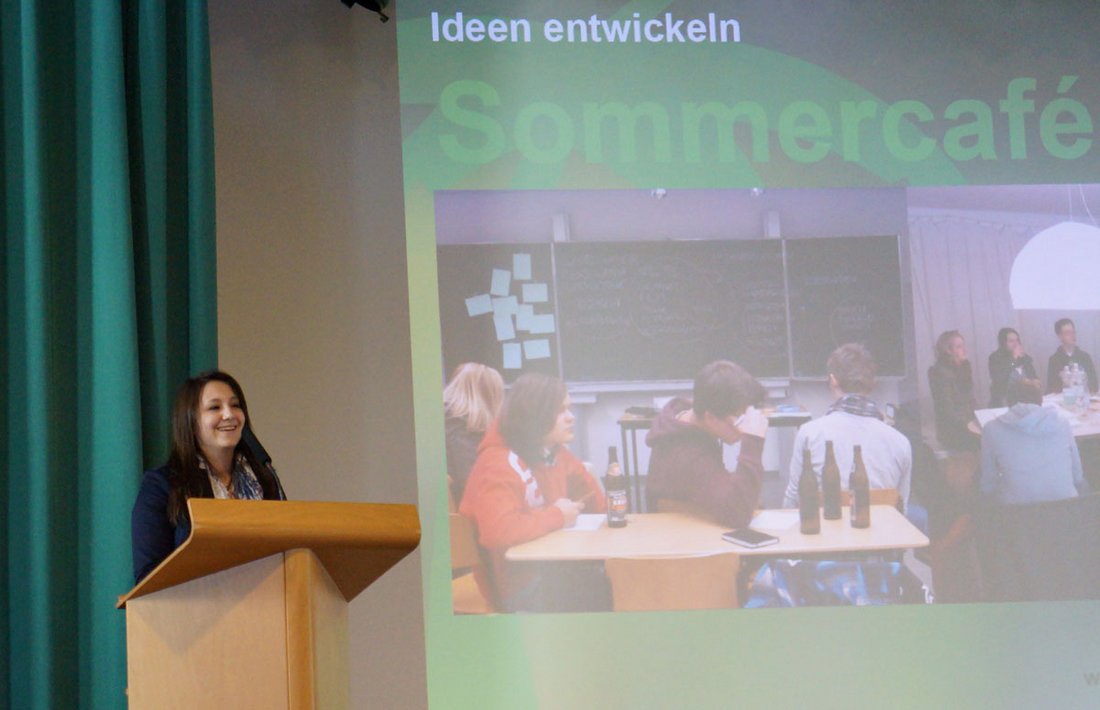 Den Part der konkreten Projektbeschreibung der „Stadtoasen Rosenheim“ – Planung, Realisation und Betrieb eines temporären Cafés – übernahm die Schülerin und Mitakteurin Josephine Menge. Ein erfolgreiches Projekt, das den Beteiligten jedoch auch einen enormen Einsatz abforderte, bedenkt man allein den „Genehmigungs-Wahnsinn“, womit die Gymnasiastin anschaulich ihren Kampf mit den Formularen umschrieb.