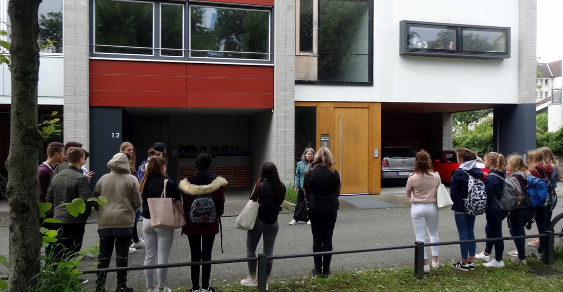 Wohnraum in der StadtDie neunte Klasse des Otto-Hahn-Gymnasiums erkundete verdichteten Wohnungsbau in Karlsruhe.
