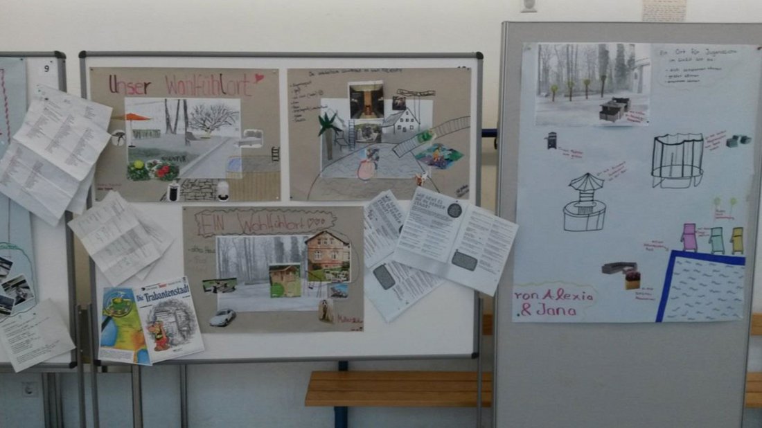Eigene Wohlfühlorte als Collage herstellen. Als Grundlage dienten Fotokopien von städtischen Brachflächen – diese sollten mit Hilfe von Zeitungsausschnitten, Zeichnungen und schriftlichen Anmerkungen bearbeitet werden.