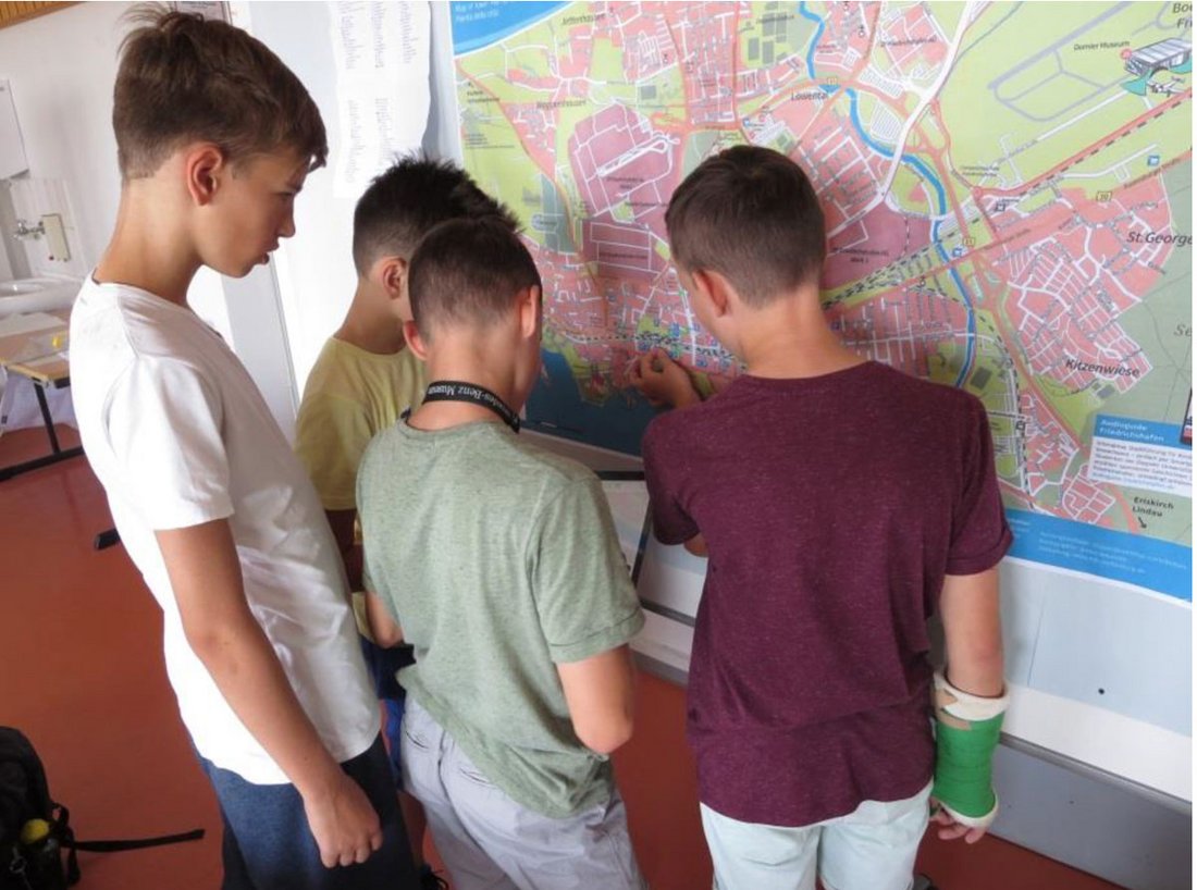 In einem dreitägigen Projekt haben vier Jungen und vier Mädchen aus der 6. und der 7. Klasse des Karl-Maybach-Gymnasiums die Stadt Friedrichshafen erkundet und sie dabei neu kennengelernt.
