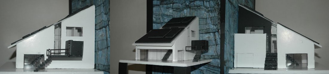 Für den Entwurf haben wir gemeinsam ein Raumprogramm aufgestellt und uns ein Grundstück ausgedacht. Anhand der Ideenskizzen, die jeder Schüler erst erläutert hat, haben wir uns auf sinnvolle innere Raumzusammenhänge und die Ausrichtung der Nutzungen zum Sonnenverlauf verständigt.