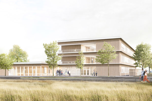 Grundschule, Bad Mergentheim Neubau mit Mensa und Ganztagesbereich in Holzhybridbauweise