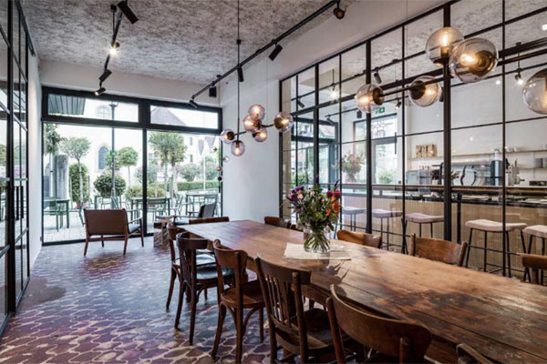 Schrooz am Markt, Schrozberg Umbau von leerstehenden Ladenflächen zu Vinothek, Eisdiele und Tagesbar mit regionalen Produkten
