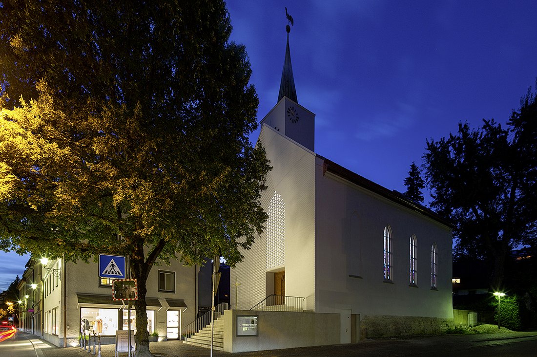 Die Jury würdigte in diesem Jahr die besonders gelungene Erweiterung und Sanierung der Auferstehungskirche der Evangelischen Kirchengemeinde von Überlingen von Wandel Lorch Architekten mit dem Sonderpreis "Bauen im Bestand". Im Innern umstrukturiert, behindertengerecht umgebaut und mit einem bemerkenswert hochwertigen Portal ausgestattet, erfuhr die bescheidene Kirche eine ungeheure Aufwertung. Neben der geschickten funktionalen Neuordnung beeindruckt vor allem der raffinierte Südgiebel mit seiner kunstvoll ausgeführten Ornamentik aus weiß geschlämmtem, geschuppt wirkendem Klinker. Der weiße Kirchenraum wird durch die durchbrochene Hülle im Spitzbogenfenster in mystisches Licht getaucht und fügt sich harmonisch in das bemerkenswerte Gesamtkonzept. Die Auferstehungskirche in Überlingen wurde übrigens auch beim Beispielhaften Bauen im Bodenseekreis ausgezeichnet: zum Objekt in der Datenbank