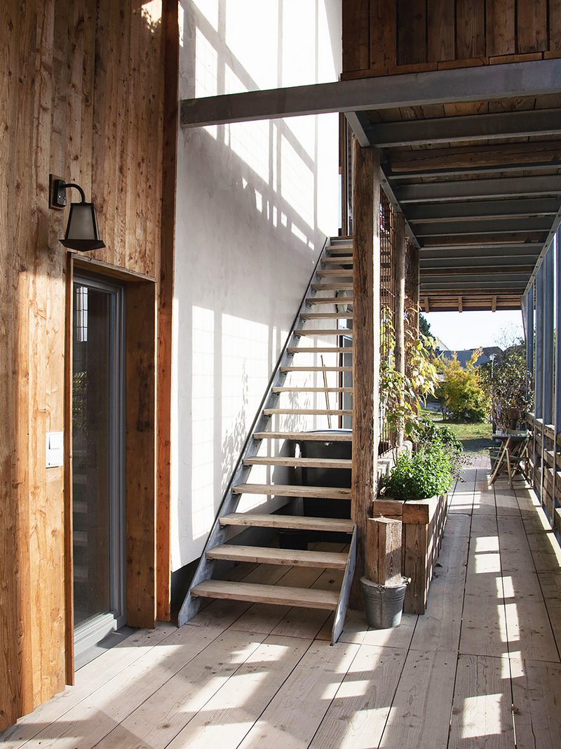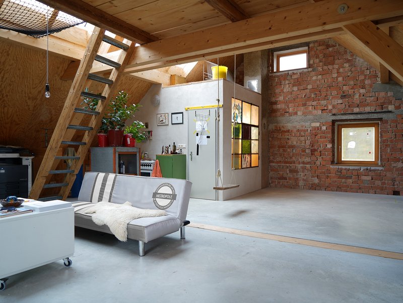 Die Freiflächen um das Gebäude sind entsprechend ihren Funktionen platziert. Die atmosphärische Vielfalt und naturnahe Ausgestaltung der unterschiedlichen Flächen steht in frischem Kontrast zu den Vorgärten der Nachbarschaft. Der spielerische Umgang mit authentischen Materialien und robuster Detaillierung spiegelt den kreativen Geist wider, der in der Alten Schmiede einen neuen Raum gefunden hat.