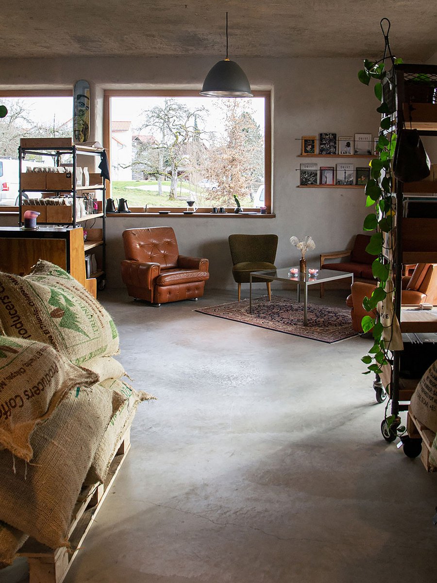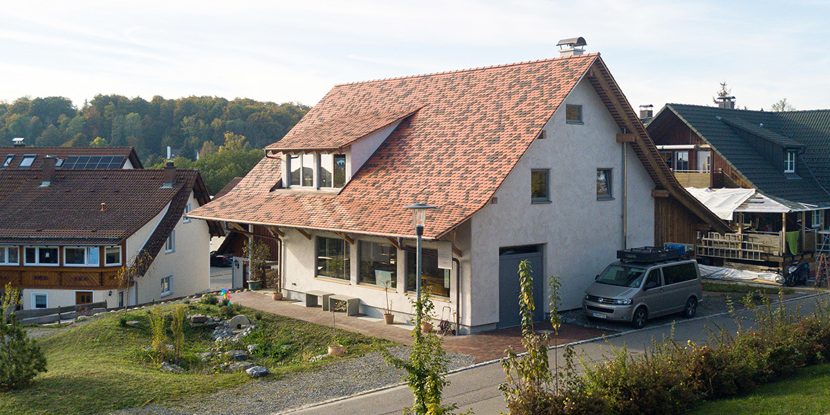 Die Alte Schmiede prägte schon lange das gewachsene Ortsbild in Heiligenberg und beherbergte zuletzt eine Werkstatt und Schmiede für Klanginstrumente. Nach mehrjährigem Leerstand sind dort heute eine Kaffeerösterei mit Verköstigung, ein Kunstatelier, Büroräume, sowie einer Werkstatt und Lagerräume im Untergeschoss beheimatet. Mit der Sanierung wurde die äußere Hülle vollständig saniert und die ursprüngliche Kubatur um einen kleinen Anbau erweitert. Im Inneren des Gebäudes sind die originalen Strukturen und Materialien in ihrem ursprünglichen Charakter größtenteils erhalten und freigelegt. Neue Oberflächen und Materialien sind bewusst so gewählt, dass sie die unverstellte Sprache und Rohheit der historischen Bausubstanz weiterführend ergänzen.