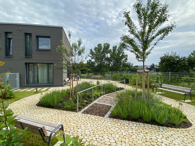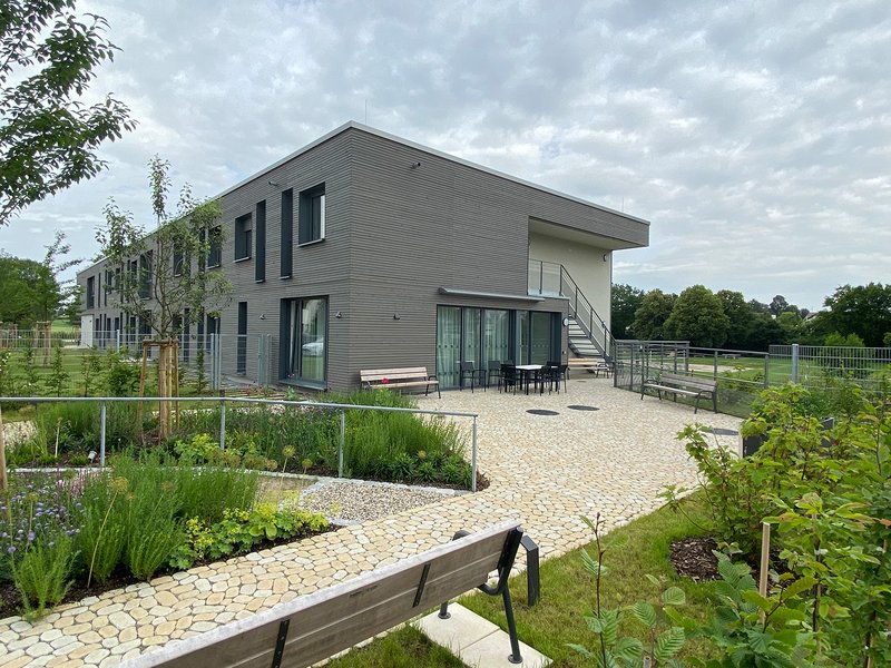 Nach eingehender Prüfung und Sicherstellung, dass an jeder Stelle die eingesetzten Mittel auch wirklich den Bewohnern und ihren Betreuern zugutekommen, sind Bauweise und Konstruktion sowie das Technikkonzept dementsprechend entwickelt worden. Die Lage in der Grünaue lässt auf lange Sicht eine „Überhitzung“ des Ortes und der Umgebung durch lange Hitzeperioden ausschließen. Die somit langhin gegebene Möglichkeit der Nachtauskühlung führt zur Einsparung einer anlagentechnischen Klimatisierung der Innenräume - energetisch und ökologisch ergeben sich hierdurch Pluspunkte. Unterstützend wirkt hierin die Entscheidung das Gebäude in Massivbauweise zu erstellen. Die durch die Nachtauskühlung erreichten Temperaturen, können durch die thermische Speicherfähigkeit des Gebäudes über Tage und Wochen gehalten werden.