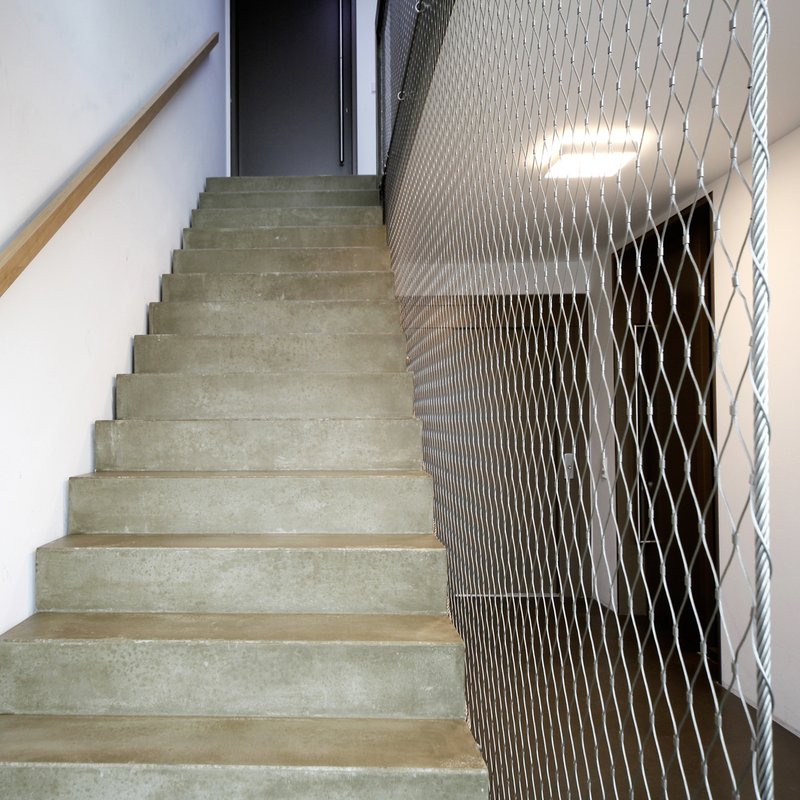 Da es in den Obergeschossen keine Wände gibt, können diese problemlos gut als Büro oder zum Wohnen genutzt werden. Der Bereich in Verlängerung des Treppenhauses kann abgetrennt und als Gästezimmer oder Büro je nach Bedarf zugeschaltet werden. Um das großzügige Raumgefühl zu erhalten, wurde das zweite Obergeschoss, das zur Zeit als Wohnraum genutzt wird, mit Schränken und Raumteilern (Höhe: 2,10 m) ausgestattet und der Zwischenraum zur Decke mit klaren Oberlichtern geschlossen.