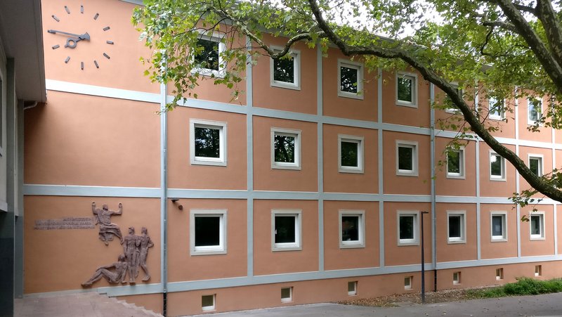 Das Bertholdgymnasium wurde 1958 nach den Plänen von Hans Geiges und Helmut Phleps an der Hirzbergstrasse neu erbaut und steht seit 2018 unter Denkmalschutz. Substanzielle Schädigungen an den Außentragteilen und der Holzfenstern erforderten eine umfassende Fassadensanierung.