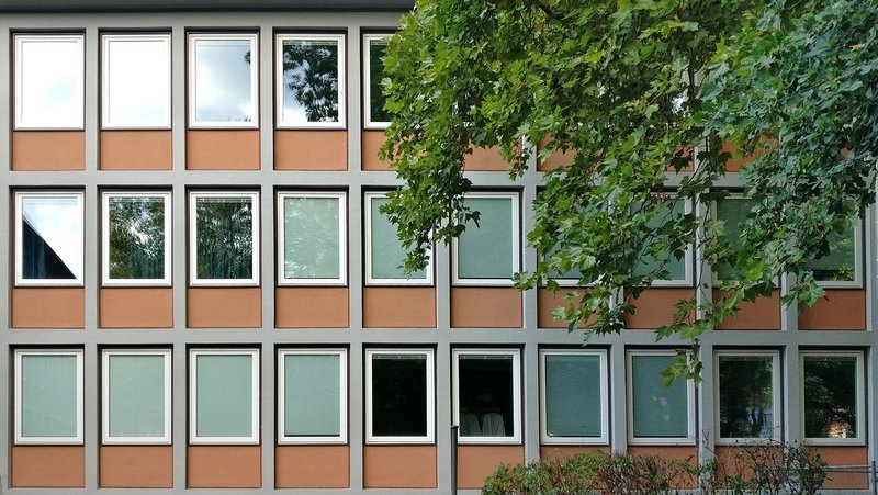 Durch die Erneuerung der Schwingfenster und den Einbau von Einzelraumüberwachungen in der Fensterlüftung wurde eine Heizenergieeinsparung von 35 Prozent erreicht. Die erforderliche Betonsanierung wurde ohne Veränderung des äußeren Erscheinungsbildes durchgeführt.