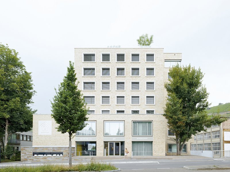 Ausgangspunkt des Projekts ist das im Jahr 1963 erbaute, siebengeschossige Studentenwohnheim auf dem Esslinger Lohwasen. Das Grundstück befindet sich in Nachbarschaft zum altehrwürdigen Georgii-Gymnasium im Westen, dem gewerblich genutzten Boley-Areal im Norden und dem in direkter Nachbarschaft angrenzenden Otto-Riethmüller-Haus der evangelischen Kirche im Süden. Am Altstadtring der Berliner Straße und dem Kanal Rossneckar, einem Nebenarm des Neckars, gelegen, bietet die städtebauliche Situation vielfältiges Entwicklungspotential.Im Rahmen einer Mehrfachbeauftragung, die vom ortsansässigen Bauträger Wohnbau Metzger in Abstimmung mit dem Stadtplanungsamt der Stadt Esslingen ausgelobt wurde, erhielt unser Büro im Jahr 2012 den Zuschlag zur Realisierung. Neben dem Umbau des ehemaligen Studentenwohnheims sollten weitere Flächen für Wohn-/Gewerbenutzung und Parkierungsflächen entstehen.Das übergeordnete städtebauliche Ziel unseres Entwurfs ist die Verknüpfung des schematischen, bezugslosen vorhandenen Baukörpers aus den 1960er Jahren mit den umgebenden Bauten und Einflussfaktoren und die Herausbildung eines prägnanten Ortes am Tor zur Altstadt.