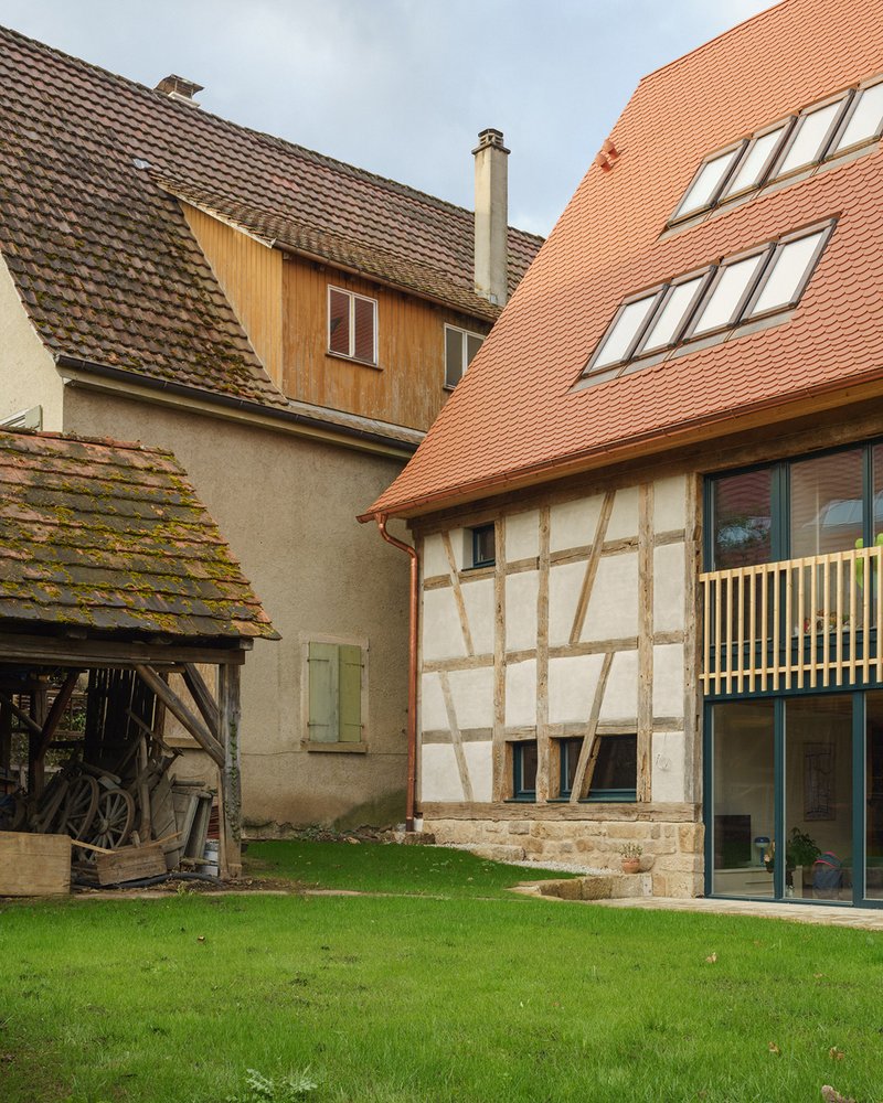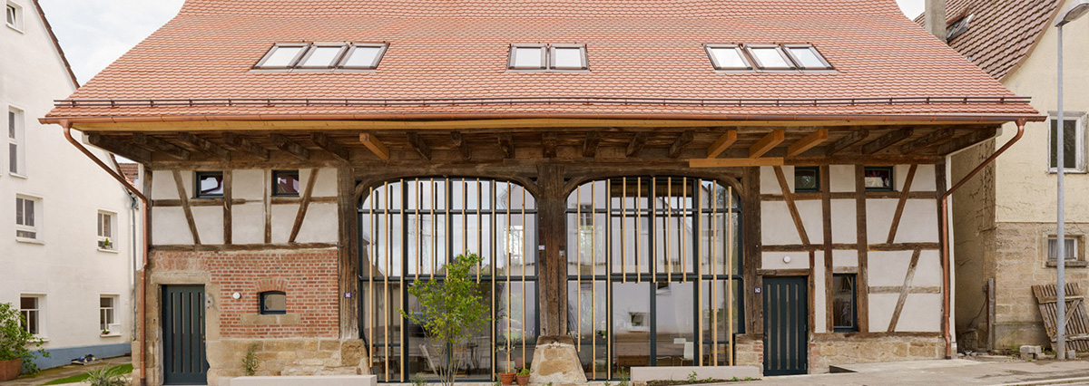 Im historischen Ortskern von Tübingen-Derendingen wurde eine Doppelscheune von 1806 denkmalgerecht zu einem Mehrfamilienhaus mit vier Wohneinheiten umgebaut. Ziel war eine ressourcenschonende Umnutzung, die die Anforderungen des Denkmalschutzes mit heutigen Wohnbedürfnissen und einfachen energetischen Standards verbindet.