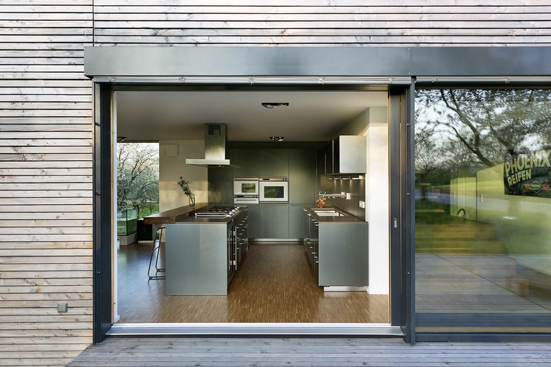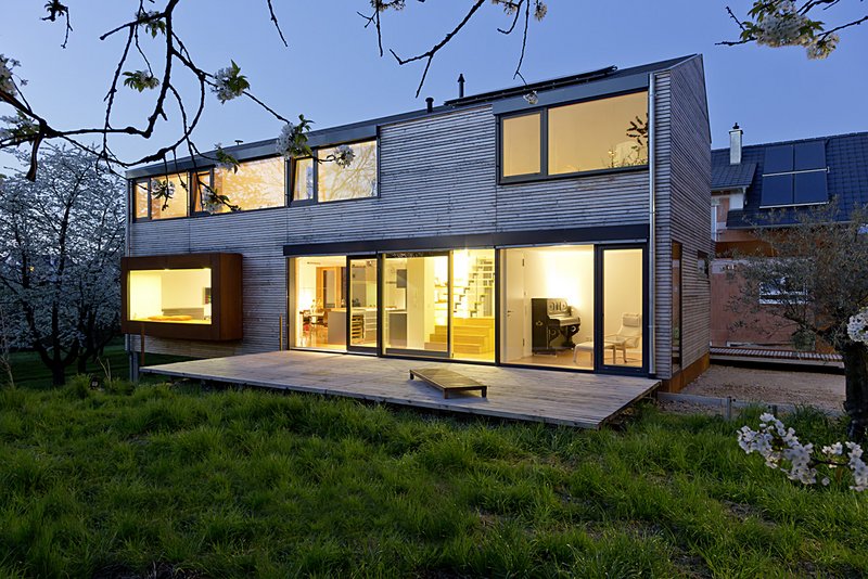 Als KFW 55 Niedrigenergiehaus konzipiert, wurden alle Wand- und Dachelemente in der Werkshalle des Holzbauers vorfabriziert und innerhalb von einer Woche auf der Baustelle aufgerichtet. Das gesamte Gebäude ist mit umweltfreundlichem Cellulose-Einblasmaterial gedämmt und dreifachverglast. Eine integrierte Lüftungsanlage sorgt zusätzlich für das richtige Wohlfühlklima.