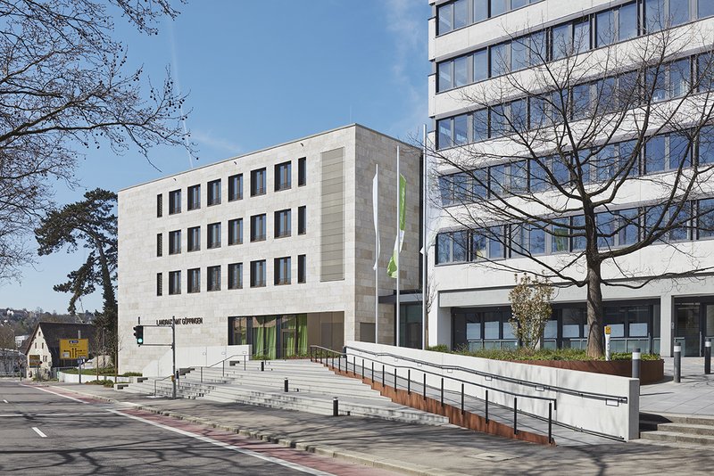 Der erweiterte Platzbedarf im Landratsamt Göppingen sowie die in die Jahre gekommenen Bestandsgebäude führten zur Auslobung eines Wettbewerbs für die Realisierung eines Erweiterungsbaus. Im Wettbewerb mit zwölf weiteren Teilnehmern überzeugte der Entwurf von BFK.