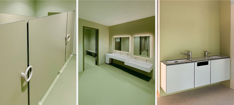 Die großzügige Belichtung, die natürliche Materialwahl sowie eine kontrollierte Klimatisierung tragen zu einem gesundheitsfördernden und angenehmen Lernumfeld bei. Insgesamt vermittelt das Gebäude eine zeitgemäße, nachhaltige Schularchitektur, die den hohen Anforderungen an Funktionalität und Wohlbefinden gerecht wird.