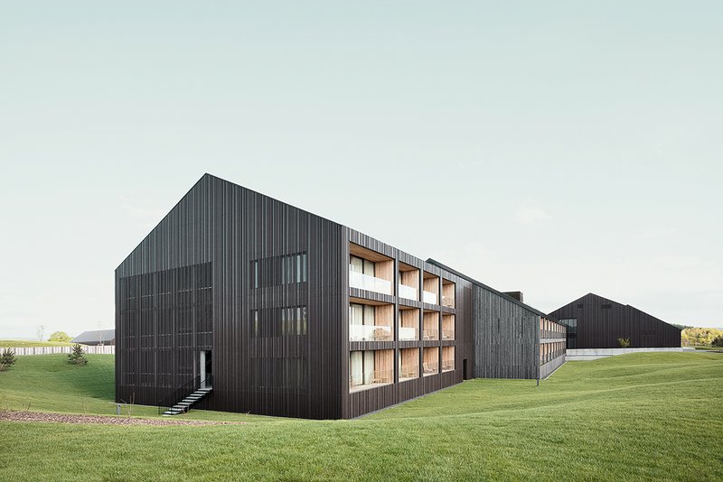 BESTANDSERWEITERUNG Bewusstsein und Wertschätzung regionaler, traditioneller Architektur sowie behutsamer Umgang mit dem Bestand bildeten die Grundlage für die Erweiterung des Fünf-Sterne Golf- und Wellness-Resorts. Das Gebäudeensemble wurde über die Jahrzehnte stetig erweitert. Eine unübersichtliche Gebäudeorganisation, die lange Erschließungswege und personalintensive Abläufe mit sich brachte, war die Folge. Mit dem Weiterwachsen des Betriebes wurde eine neue Struktur erforderlich, die sich dem Nutzer unmittelbar erschließt und wirtschaftliches Arbeiten garantiert.