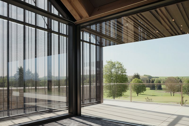 NACHHALTIG WIRTSCHAFTLICHE FASSADENKONSTRUKTION Der Aufbau der Fassadenkonstruktion als durchgängig hinterlüftetes Prinzip ist deutlich langlebiger und umweltschonender als geschlossene Systeme. Der Stahl verfügt durch seine Pladur-Schutzschicht über hervorragende Eigenschaften beim Korrosionsschutz. Es gibt keinerlei Ionenauswaschungen über die Blechoberfläche. Für das Golfhotel war diese Eigenschaft des Materials extrem wichtig, da das gesamte Regenwasser aller Dächer für die Bewässerung des Golfplatzes in einen See eingespeist wird. Zudem ist der Rohstoff Stahl durch Recycling komplett wiederverwertbar und wird der Kreislaufwirtschaft als regeneratives System zur nachhaltigen Nutzung von Rohstoffen wieder zugeführt.