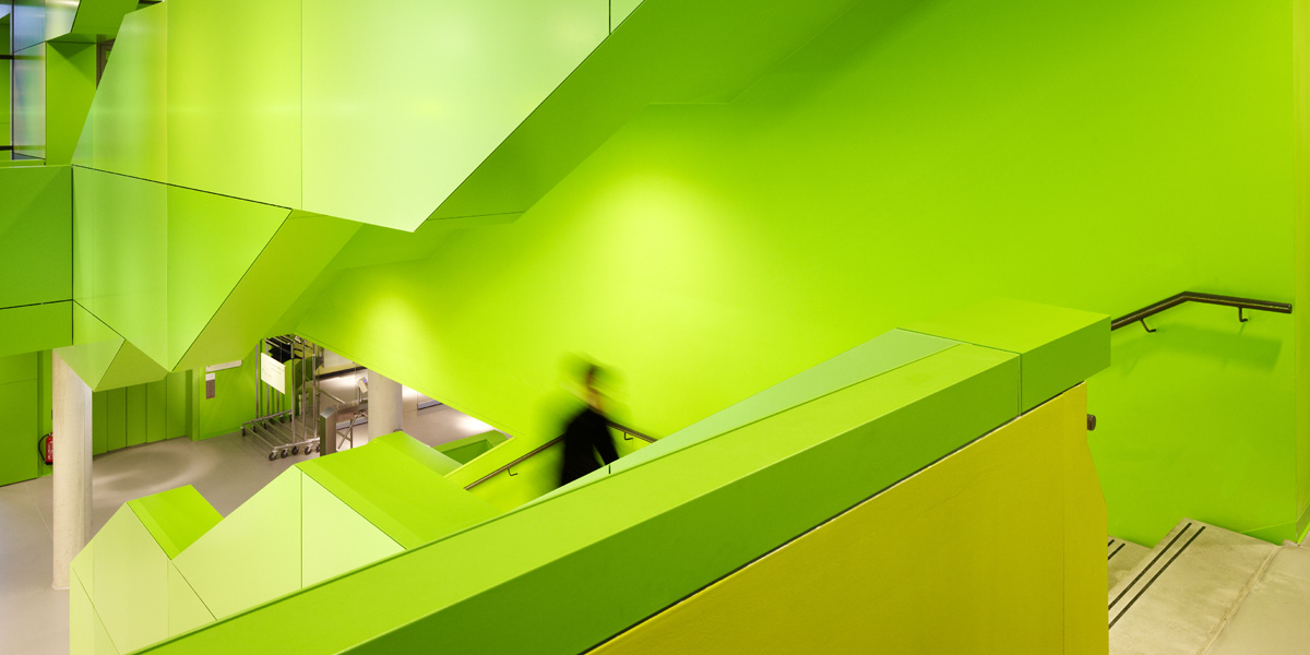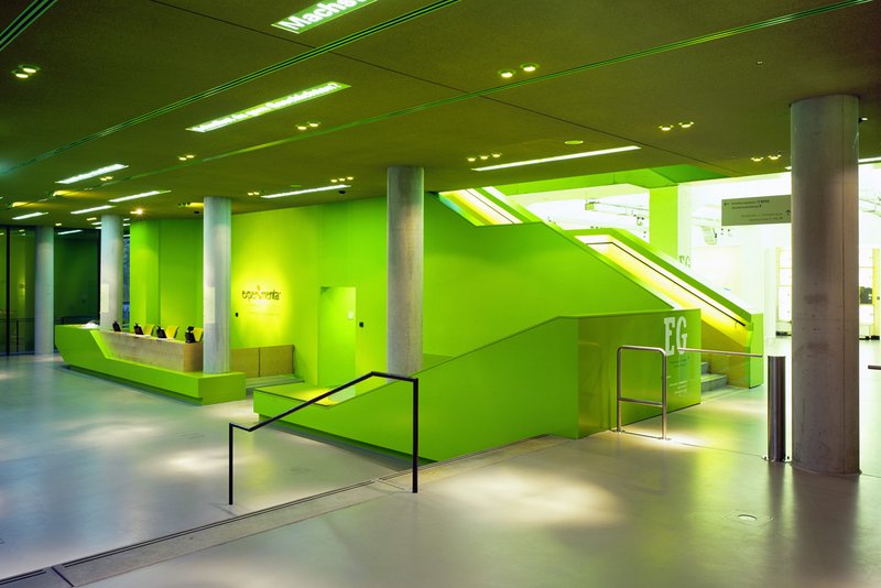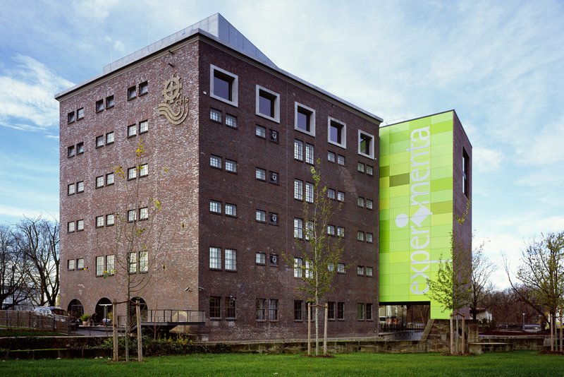 Auf Grundlage eines gewonnenen Architektenwettbewerbes wurde einen Ölsaatspeicher aus dem Jahr 1936 (Architekt Hermann Wahl) zu einem Science Center für Naturwissenschaften und Technik umgebaut und erweitert. Ein schlanker Neubau ergänzt dabei das auf einer Neckarinsel stehende Gebäude zu einem neuen Komplex. Der Anbau erhielt "als gemeinsame Haut" die gleiche Klinkerschale wie der Speicher und stärkt somit seine Solitärwirkung. Im Neubau liegt das Foyer, das mit einem verglasten und beleuchteten Fugenraum zwischen den Zwillingsbauten verbunden ist. Entlang der Fugenwand zum Altbau bilden grüngelbe Aluminiumplatten einen artifiziellen Kontrast zu den natürlichen, braunroten Backsteinen. Eine eingeschnittene Haupttreppe macht diese Wand zur Skulptur. Brücken verbinden sie mit der Dauerausstellung im alten Speicher, dessen signifikante Innenräume mit dem sichtbaren Stahlbetonskelett erhalten blieben. Die versetzte Anordnung von Alt- und Neubau macht die grüne Wand auch im Stadtraum weithin als Signet sichtbar.