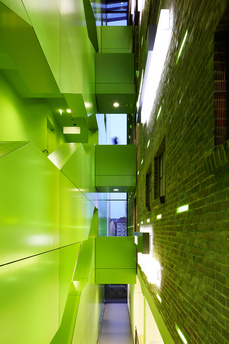 Ausgangspunkt der Entwurfsgedanken war eine klare Bekennung zu dem besonderen Ort und der Ausstrahlung des alten Speichers. Die Annäherung an das Thema Science Center führte nicht über die Suche einer äußerlich figurativen und futuristischen Formensprache, wie der vermeintliche architektonische Codex dieses Gebäudetypus meinen lässt, vielmehr stand das Aufspüren und Verstärken der städtebaulichen Qualitäten und der vorgefundenen Situation bei studioinges im Mittelpunkt des Entwurfsprozesses. Das spektakuläre Element der Architektur entfaltet sich im Innenraum, der sich als städtebauliche Geste und mit entsprechenden Stadtbezügen auch nach Außen abzeichnet.