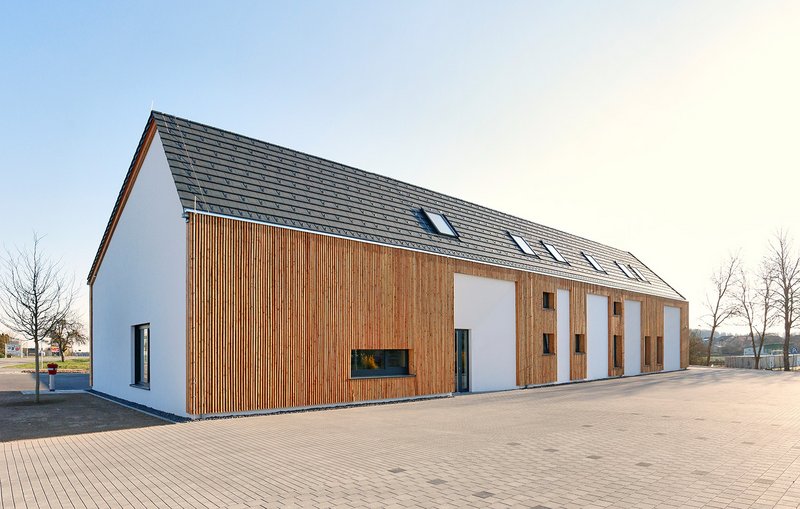 Durch die klare Trennung von Sozialräumen und Fahrzeughalle, sowie gut-platzierten Erschließungen können reibungslose Abläufe im Ernstfall gewährleistet werden. Die Fahrzeughalle ist über den Hof direkt an die Hauptstraße angeschlossen. Kreuzungsverkehr zwischen Einsatzfahrzeugen und ankommenden Einsatzkräften wird vermieden durch die Trennung von Hof zu Stellplätzen und die Möglichkeit der Umfahrung des Hauses.