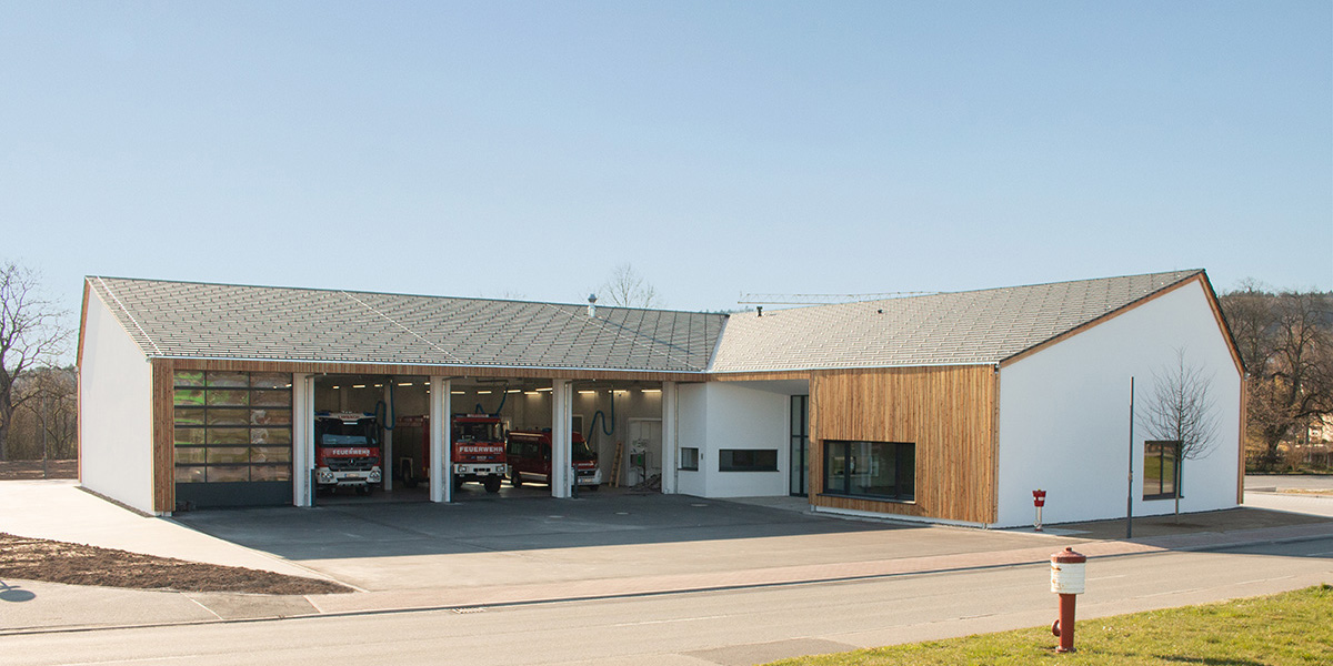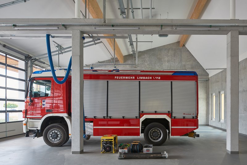 Das Gebäude greift die ortstypische, aber auch gerade in den Wintermonaten unter Berücksichtigung der Schneelasten, vernünftige Dachform Satteldach in einer asymmetrischen Abwandlung auf. Mauerwerk, (sichtbarer) Stahlbeton, Holz und verputzte Flächen bilden die wesentliche Konstruktion und prägen das Erscheinungsbild des neuen Feuerwehrhauses in Limbach.
