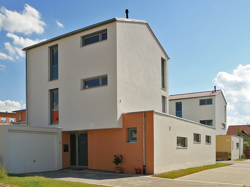 Vorbemerkung Der Begriff Nachhaltigkeit gilt seit einigen Jahren als Leitbild zur Lösung gegenwärtiger und zukünftiger Umweltprobleme. Es existieren eine Vielzahl von Handlungsempfehlungen, die die drei Schutzziele Ökologie, Ökonomie und soziale Aspekte vernetzen sollen. Für Baumaßnahmen lässt sich daraus ableiten, dass zukunftsfähige Wohnstrukturen ökologische, ökonomische und soziokulturelle Anforderungen unter Einbeziehung der Bewohner in Einklang bringen müssen. Nachhaltiges Bauen strebt insofern für alle Phasen des Lebenszyklus eines Gebäudes – von der Planung und Errichtung über die Nutzung bis hin zum Rückbau – eine Minimierung des Verbrauchs von Energie und Ressourcen, eine möglichst geringe Belastung der Umwelt sowie eine durchgängige soziale und gestalterische Qualität an. Projektbeschreibung das Bauen "auf der Grünen Wiese" führt nicht nur in Reutlingen zu negativen Folgen wie Pendlerverkehr und Belastung der Ökosysteme. Es muss daher Gegenangebote geben, die die Vorzüge des städtischen Wohnens mit den Vorteilen des Einfamilienhauses im Grünen verbinden können.Das Konversionsprojekt "Unterm Georgenberg" nutzte ein altes Kasernengelände für neues, zentrumnahes Wohnen. Das Gebiet wurde nach einem städtebaulichen Wettbewerb mit Grün- und Sichtachsen hoher Qualität geplant. Die Baustruktur bilden heute in der Regel die üblichen Reihen-, Doppel- und Mehrfamilienhäuser. Ein Grundstück wurde für unser Experiment "Flexibles Baufeld - Nachhaltiges Wohnen" freigegeben und der Bebauungsplan für diese Fläche modifiziert. Das Baufeld wurde nicht als starre Struktur gesehen, sondern hatte eine große Flexibilität bis in den kleinsten Hausbaustein. Wir konnten die Grundstücksgrößen je nach Nachfrage zwischen 8 bis 12 Häuser aufteilen, insgesamt gab es 16 Grundstücksvarianten.