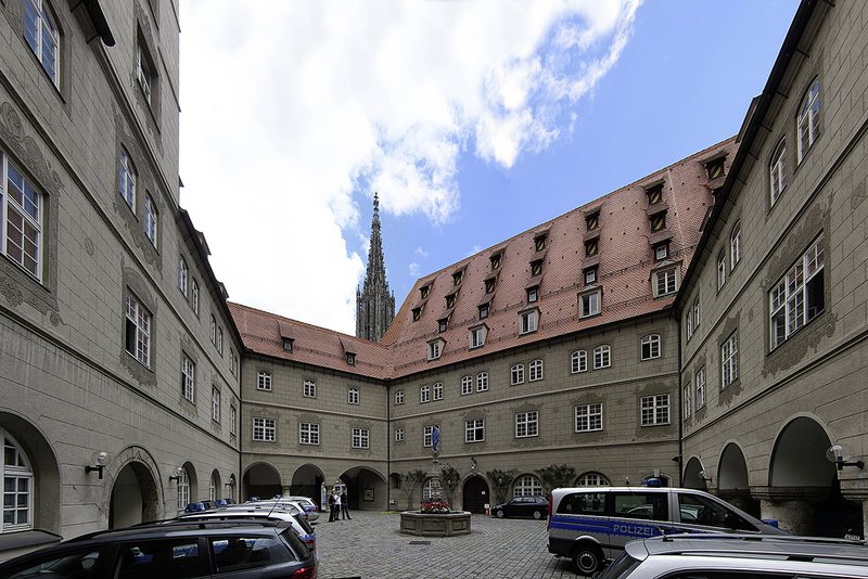 In seiner heutigen Kubatur wurde der "Neue Bau" Ende des 16. Jahrhunderts errichtet und ist seither eines der stadtbildprägenden Häuser im Zentrum Ulms. Früher Herberge und Speichergebäude ist heute im kompletten Gebäude die Polizeidirektion Ulm untergebracht.Ein Großbrand 1924, Beschädigungen im zweiten Weltkrieg sowie Nutzungswechsel mit veränderten Technik- und höheren Sicherheitsanforderungen machten mehrere Wiederaufbau- und Sanierungsphasen notwendig. So wurde 1927, nach dem verheerenden Feuer, der Dachstuhl durch eine völlig neuartige Eisenbetonkonstruktion mit Hohlrippendecke hergestellt. Diese ist inzwischen als besonders schützenswert eingestuft.Mit Inkrafttreten der Polizeistrukturreform 2014 erhielt Ulm den Zuschlag als Standort für ein Polizeipräsidium. In Folge wurden weitere technische Modernisierungen wie auch der Ausbau des FLZ notwendig.Die aktuelle Modernisierung durch das Land Baden-Württemberg und hochstrasser.architekten integriert ein hochtechnisiertes Führungs- und Lagezentrum der Polizei einfühlsam und mit viel Liebe zum Detail in die alte Substanz des Einzeldenkmals. Dabei wird eine Arbeitsumgebung geschaffen, die es ermöglicht auch in extremen Stresssituationen und unter höchster psychischer Belastung maximale Konzentration zu bewahren und optimal intern zu kommunizieren – und das rund um die Uhr in 24-Stunden Erreichbarkeit.