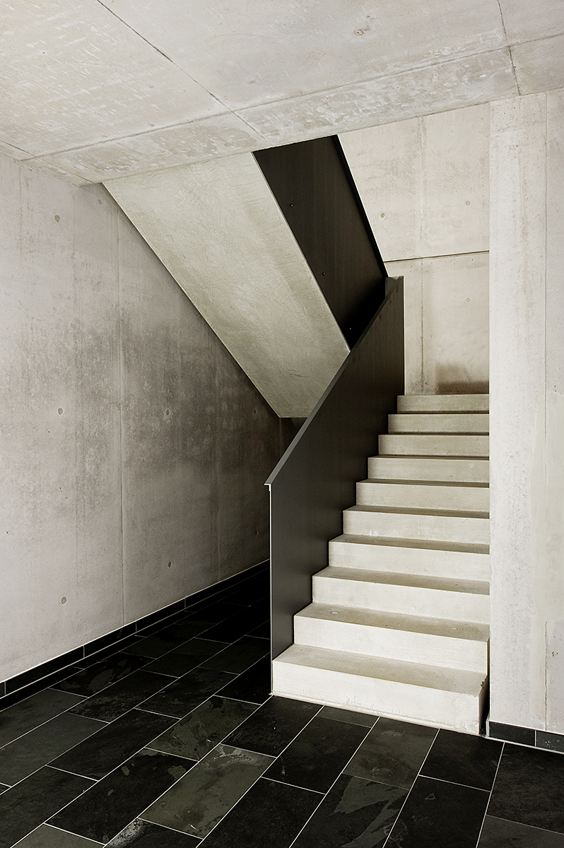 LKW-BeschauraumDas Gebäude für die LKW-Beschau bildet die Raumkante des Zollhofs zur östlichen Seite des Grundstücks. Die skulpturale Form des Gebäudes ergibt sich auch hier aus seiner Nutzung. Die notwendigen Rampen erweitern sich zum massiven Sockel für die aufsitzende Beschauhalle mit einem weit auskragendem Vordach zum wettergeschützten Ausräumen der Ladungen.