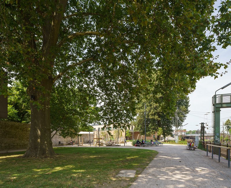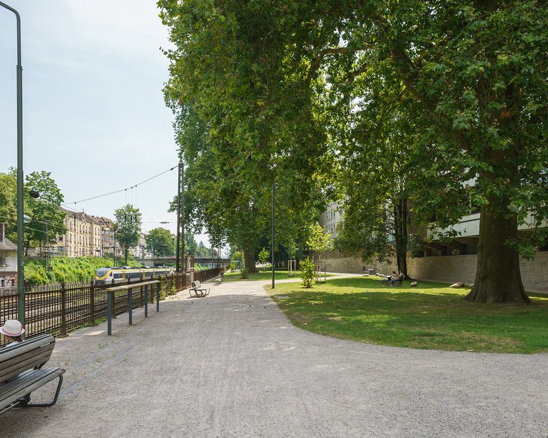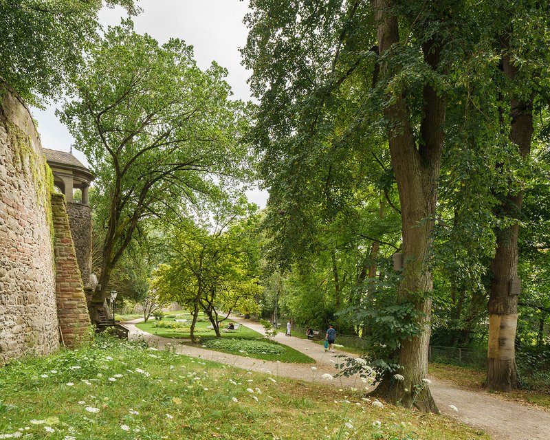 Die Gleispromenade Nord wurde als linearer Grünraum zwischen historischer Stadtmauer und denkmalgeschütztem Bahngraben neugestaltet. Der Spazierweg führt in sanften Bögen durch die Anlage. Dabei zonieren Sitzbänke den Fuß- und Radverkehr entlang der Brüstung. Auf den großzügig angelegten Rasenflächen bieten lose platzierte Sitzgruppen Gelegenheit zum zwanglosen Verweilen im Schatten der Baumstände. Ein zeitgemäßer Spielplatz vermittelt als Bindeglied zwischen dem neuen Rée-Carré und der Promenade. Der alte Baumbestand wurde weitgehend erhalten und klimatisch zukunftsfähige Neupflanzungen integriert, um den grünen Charakter des Grüngürtels langfristig zu sichern. Ein rampenartiger Übergang führt zur Zauberflötenbrücke, der durch Bodenintarsien und eine unterleuchtete Sitzbank betont wird. Neben der Stärkung des Altstadtrundweges im Grünen wurden attraktive neue Orte für Kinder und Jugendliche im Kontext der Altstadt geschaffen und die faszinierende Dynamik der Umgebung neu erlebbar gemacht.