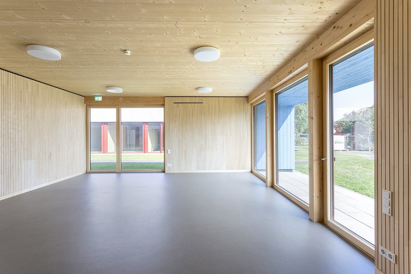 Differenzierte Räumlichkeiten bieten einen vielfältigen Lebensraum zur Entfaltung und Entwicklung der Kinder. Natürliche Materialien wie naturbelassenes Holz innen wie außen ergeben eine angenehme Atmosphäre und laden zum Erfahren ein.