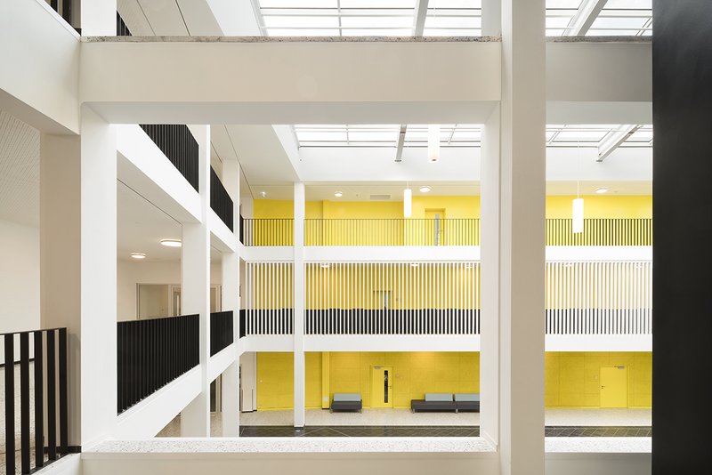 - Umbauten zur Erfüllung der Programmfläche- Neubau Lichthof zur Aktivierung von Kellerflächen für Kunst-/Werkstatträume- Generalsanierung des Bestandsgebäudes (energetisches Konzept, Brandschutz, Oberflächen)- Neuorganisation Lehrertrakt- Neuorganisation der Fachräume- Umbau im laufenden Betrieb- Umbau des ehemaligen Innenhofs zu einer zentralen Halle/Aula- Neubau Begrüßungshaus für die Jahrgänge 1 und 2- barrierefreie Anbindung an Schwimmhalle und Großes Lernhaus durch einen Verbindungsbau- Umsetzung einer idealtypischen Clusterlösung in der Gebäudekonzeption: mehrere Unterrichtsräume werden mit einer multifunktionalen, gemeinsame „Mitte“ zu einer Einheit zusammengefasst
