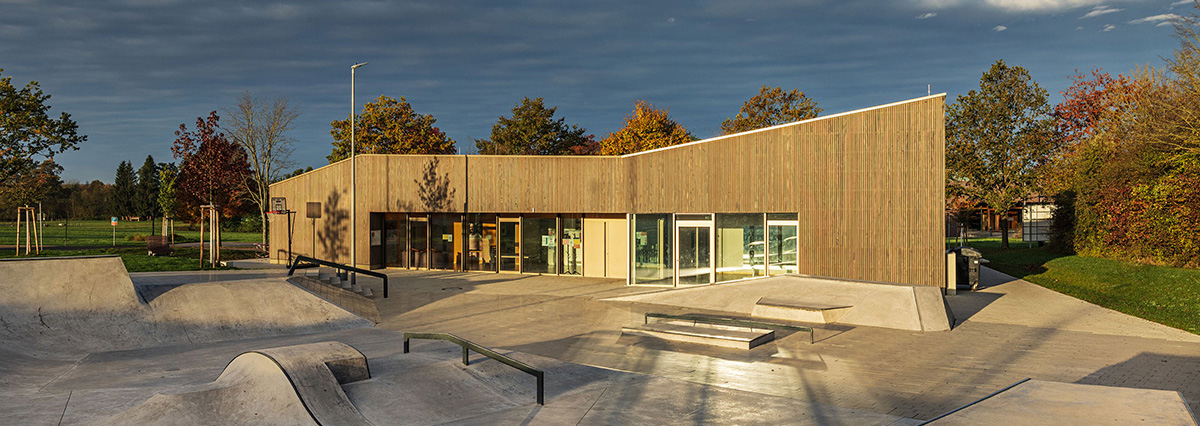 Streetplaza, Flowpark und Bowl kommen in einzigartiger Weise zusammen. Eine in die Freiraumgestaltung eingebettete "Skatepark-Scholle" gräbt sich nach Osten in das ansteigende Gelände, modelliert nach Norden und Süden gegenüberliegende Anfahrtsrampen und öffnet sich dann zum westlich gelegenen Jugendhaus. Von hier ergeben sich spannende Einblicke über den „Anfängerbereich“ bis in den Flowpark. Somit bietet sich den Skatern eine Bühne mit regelmäßigem Publikum.
