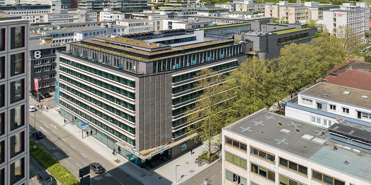 In den 1990er Jahren erhielt unser Büro den Auftrag, eine neue Hauptverwaltung für das Energieunternehmen EVS zu planen. Unser Neubau mit Klinkerfassade ergänzte die bestehende gläserne EVS-Verwaltung aus den 1970er Jahren von Kammerer + Belz zu einem Stadtblock in der Stuttgarter Innenstadt nahe des Hauptbahnhofs.