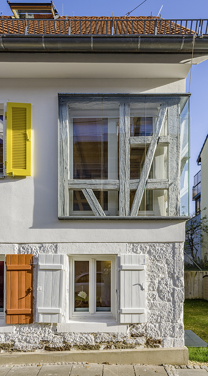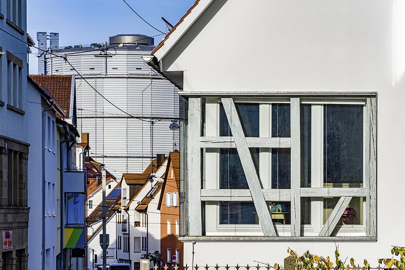 Historische BausubstanzDie Hornbergstraße bildete früher die Hauptachse von Gaisburg. Im 2. Weltkrieg wurde die alte Dorfstruktur nahezu völlig zerstört. Heute sind auf der östlichen Straßenseite lediglich die Gebäude 97 und 99 von der alten Bebauung erhalten. Das Gebäude wurde in zwei Bauabschnitten gebaut, die bis heute erkennbar sind. Der südliche Teil vermutlich um 1750, der nördliche zwischen 1842-43. Dieses historische Erbe bleibt in seiner Erscheinung und in der Materialität dank des Erhalts der Bausubstanz und des sensiblen Umbaus weiterhin erfahrbar.
