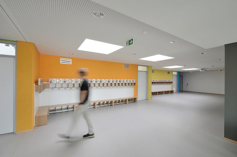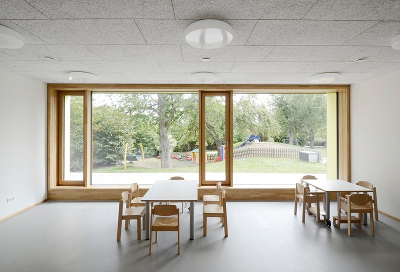 Hinsichtlich des Freibereiches wurden der Weg zum Freibereich (Abholung der Kinder) verlegt und die Beläge vor den Gruppenräumen erneuert. Insgesamt wurde bei der Konzeption darauf geachtet, möglichst langlebige und wartungsarme Materialien einzusetzen. Mit dem äußerst knapp bemessenen Budget von nur 1,5 Mio. EUR wurde sowohl die Generalsanierung des besehenden 4-gruppigen Kindergartens als auch der Anbau mit einer Gruppe, Schlaf- und Intensivraum sowie dem Koch- und Essbereiches realisiert.