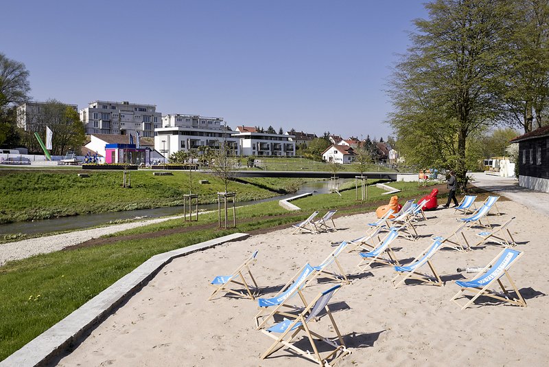 Mehr Schwung für die OhrnMit der Renaturierung des Flusslaufes im Verbindungsraum zwischen Hofgarten und Cappelaue schafft Öhringen die wohl nachhaltigste Stadtentwicklung. In diesem Abschnitt ist durch den Wegfall der Tennis- und Skateanlagen eine großzügige Aufweitung der damals stark beeinträchtigten Gewässeraue möglich. Neben der Verlegung der begradigten Ohrn wurde das Leitungsnetz der Stadt in diesem Bereich komplett erneuert. Eine neue 26 Meter lange Brücke stärkt die Verbindung der neuen Skateanlage im Süden mit den Sportflächen im Norden. Der neue Brückenkopfplatz korrespondiert formal mit dem neuen Bauwerk. Der ohnehin schon stark durch eine Schule, die Schwimmbäder und Sportanlagen geprägte Freiraum wird durch weitere Angebote für die Öhringer Jugend noch attraktiver gemacht.