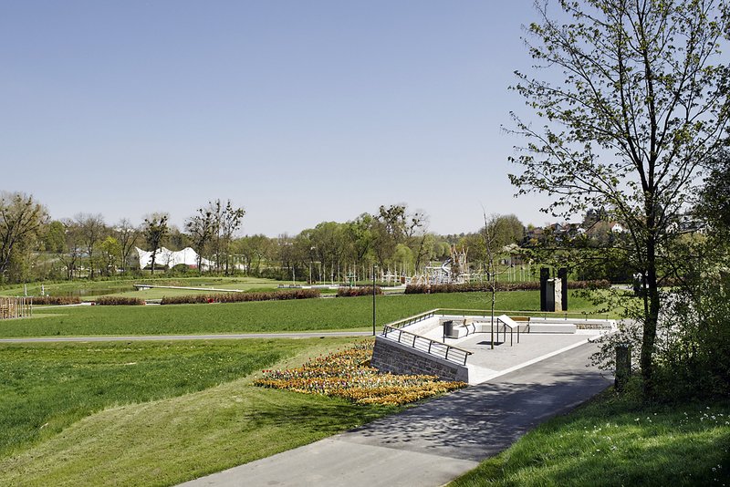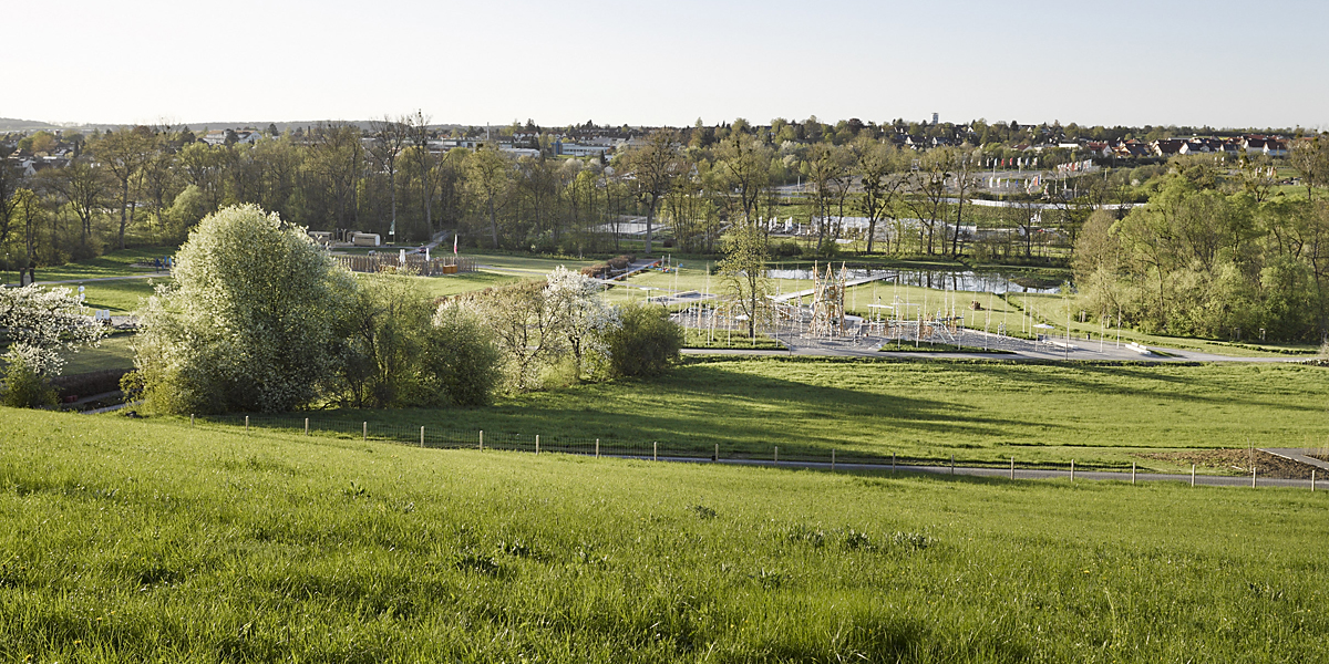 Aus Landschaft wird ParkDie ehemals landwirtschaftlich genutzten Flächen in der Cappelaue konnten im Vorfeld von der Stadt Öhringen gesichert werden, um diese als einen extensiven Landschaftspark umnutzen zu können. Herzstück bildet der historische Grenzwall zwischen Germanien und dem römischen Reich. Die ehemalige Palisadenwand mit dem nachgelagerten Spitzgraben wurde vegetativ interpretiert. Eine 450 Meter Achse aus architektonisch geschnittenen Heckenelementen prägt den Landschaftsraum zukünftig. Der übrige Park folgt dem achsialen Thema parallel zum Limes und wird in Ost-West-Richtung durch lange geschwungene Wege unterbrochen. Die großzügigen Wiesenflächen im Auenbereich der Ohrn sind zurückhaltend bespielt. In Birkenhaine eingebettete Spiel- und Sportflächen sollen zukünftig als Anziehungspunkte in der ganzen Region wirksam sein. Der großzügige Spielplatz mit Spielgeräten in Schwarz-Weiß-Lackierung folgt dem Birkenthema der Umgebung und prägt mit einem 10 Meter hohen Kletterturm und angrenzenden Kletterstrukturen den südlichen Parkteil. Das Pendant zum Spielplatz südlich der Ohrn ist die Multifunktionssportanlage im Norden, die sich ebenfalls durch eng gepflanzte Betulagehölze in die Auenlandschaft einschmiegt. Zwei Natursteinbastionen in den beiden Parkteilen ziehen die Anlage als einzige wiederkehrende architektonische Elemente zusammen.