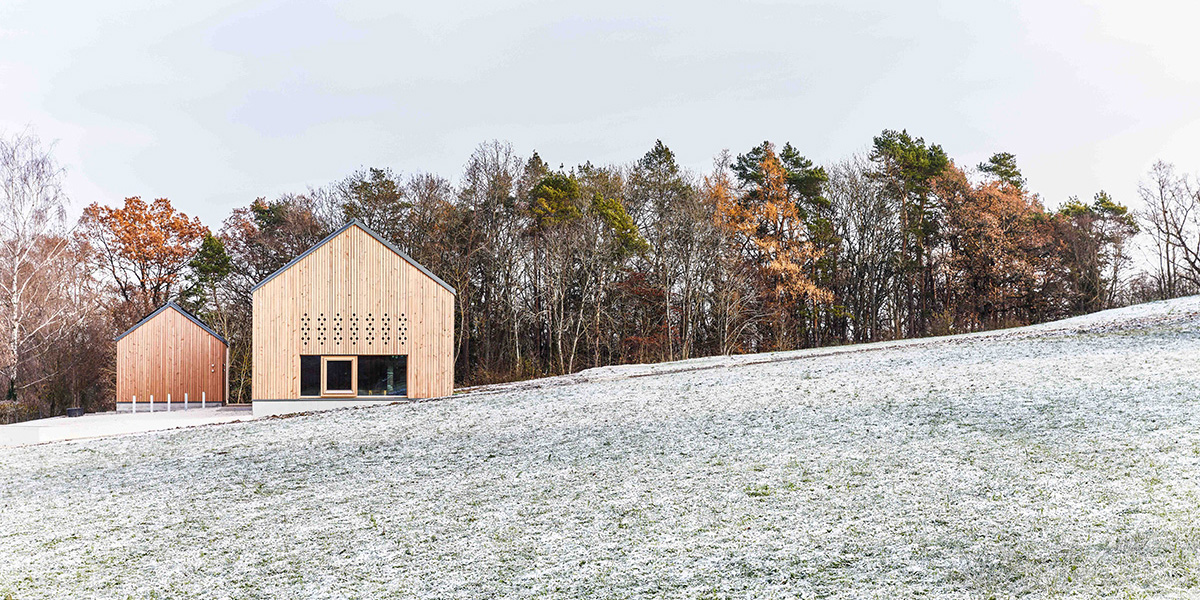 Das Vorhaben ist gekennzeichnet durch einen vielfältig gestalteten Naturgarten und eine Streuobstwiese, in die zwei solitäre Holzbauten eingebettet sind. Typologisch lehnen sich die Baukörper an die in süddeutschen Streuobstwiesen charakteristischen Holzscheunen an. Beide Gebäude wurden als Einraum-Architekturen entworfen, welche räumlich durch frei eingestellte Solitärbaukörper zoniert werden. Dabei entstanden ein Hauptgebäude mit Seminarraum, Foyer, Büros und einer Bibliothek sowie ein Nebengebäude als Lager- und Technikgebäude.