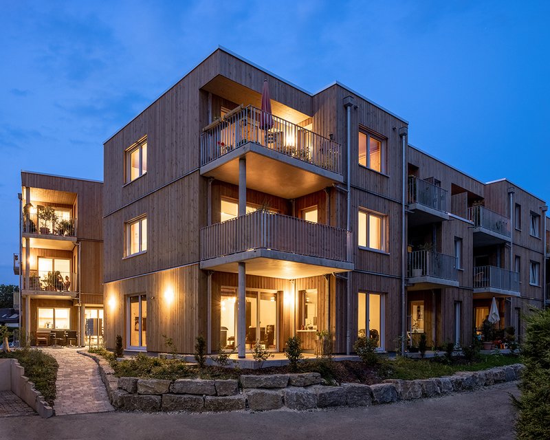 BauweiseGründung: Duktile Rammpfähle + StahlbetonfundamentrostKeller + TG: StahlbetonbauEG bis 2.OG: Holzmassivbau [Brettsperrholz]