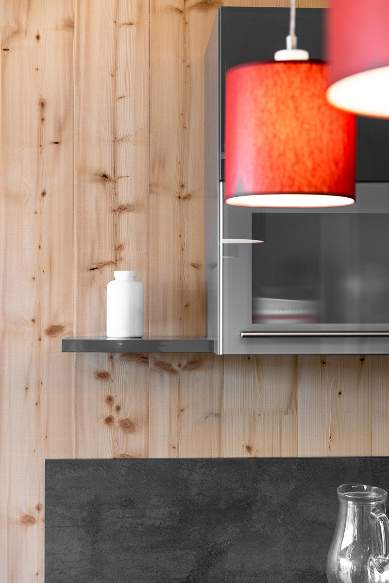 Nachhaltigkeit und ÖkologieDas Haus sollte ein möglichst CO₂-neutrales Gebäude sein. Deshalb fiel die Entscheidung auf einen Massivholzbau – mit Ausnahme des Kellergeschosses. Ein Gestaltungsprinzip des Konzeptes ist Rohbau gleich Ausbau. Hierdurch werden unlösbare Materialverbindungen reduziert, beispielsweise indem die Wände als Sichtholzwände ausgeführt werden und nicht mit Gipskartonplatten oder Ähnlichem verkleidet werden.