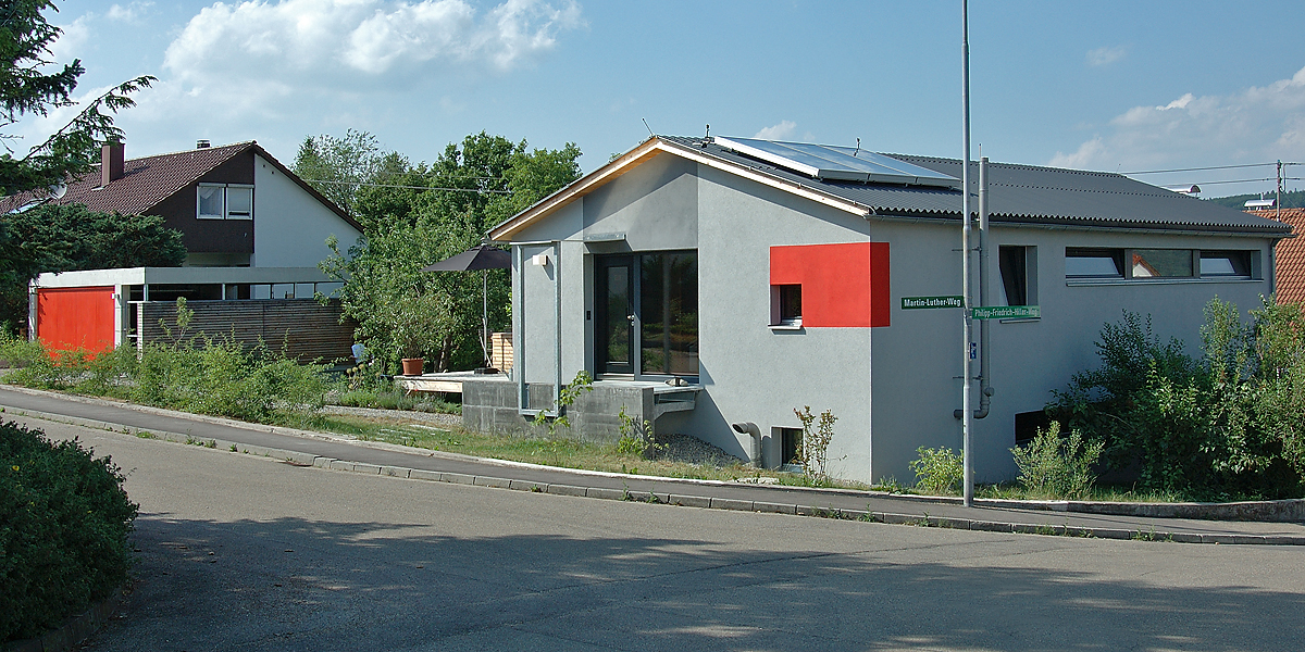 In der Ostalb-Gemeinde Steinheim, die landschaftlich reizvoll inmitten eines geologisch bedeutsamen Meteorkrater-Beckens liegt, befindet sich eine zentrale kegelförmige Erhebung, an deren Nordhang das private Einfamilienhaus nach den strengen Kriterien des Passivhausinstituts Darmstadt als zukunftsweisendes Minimalenergie-Wohnhaus (Passivhaus) erstellt wurde.