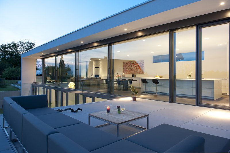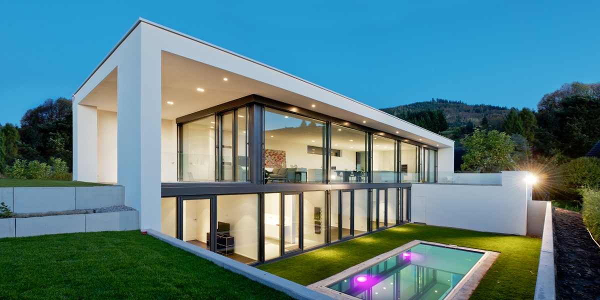 Der Restwärmebedarf des Passivhauses wird durch eine Luft-Wasser-Wärmepumpe gedeckt. Die hocheffiziente kontrollierte Wohnraumlüftung mit Wärmerückgewinnung stellt eine optimale hygienische Luftqualität bereit. Die raumhohe, flächenbündig eingebaute Verglasung der Wohn- und Schlafräume nach Süd-Westen dient der passiven Sonnenenergienutzung. Der sommerliche Wärmeschutz wird durch den Dachüberstand und außenliegende Jalousien gewährleistet. Um eine weitestgehend autarke Versorgung des Gebäudes zu gewährleisten, versorgen die Solarzellen auf dem Flachdach alle elektrischen Verbraucher mit Strom. Alle haustechnischen Komponenten sind mittels Bustechnik miteinander vernetzt und werden durch eine automatische Steuerung koordiniert.