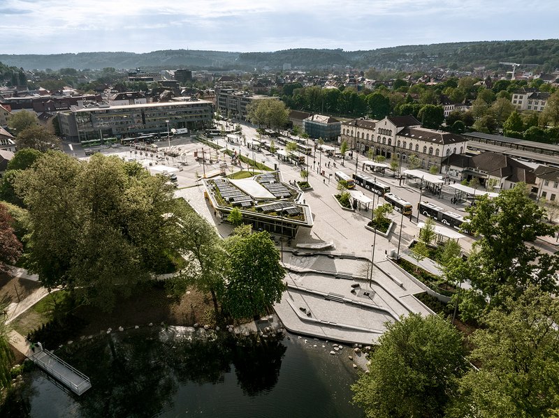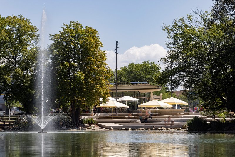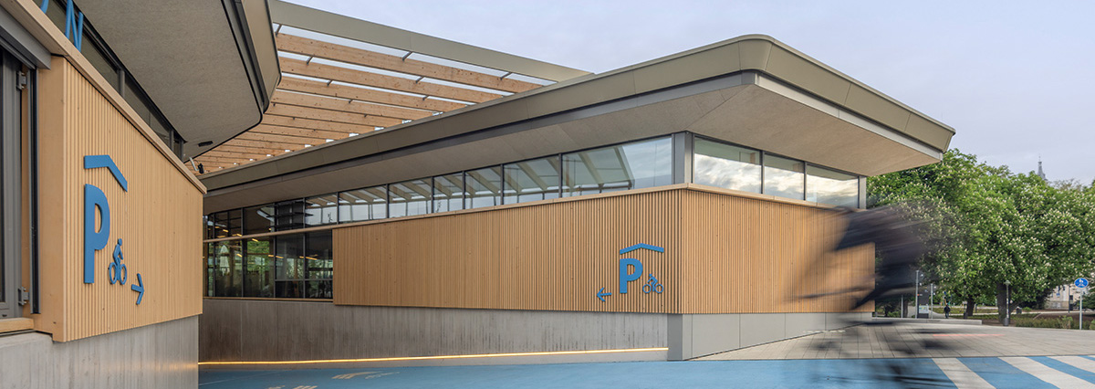 Die 2023 eröffnete Radstation in Tübingen schafft eine qualitätsvolle städtebauliche Verknüpfung zwischen dem Anlagenpark und dem bestehenden Stadtraum, um das hohe freiräumliche Potenzial des Parks in direkter Umgebung des Bahnhofs mit den Funktionen Café und Werkstatt zu stärken. Der Anlagenpark mit See, einem zum Teil sehr alten Baumbestand und einer bereits vorhandenen Infrastruktur für Veranstaltungen gehört zu einem der wichtigsten städtischen Freiräume in Tübingen.