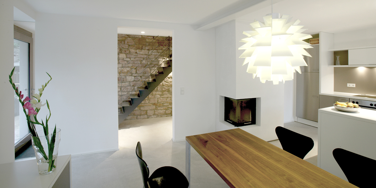 Der Gebäudezustand des letzten Umbaus, ausgeführt 1964, bildete die Ausgangslage für die Kernsanierung des Gebäudes im Jahr 2009/10. Dabei ist das Haus in seiner inneren Organisation komplett überformt worden, in seiner Volumetrie jedoch unverändert geblieben.