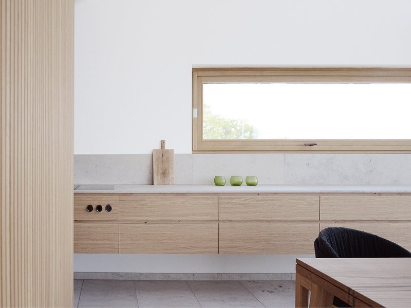 Im Interior des Schauhauses dominieren heimische Materialien in hellen, harmonischen Abstufungen und feiner Haptik. Entscheidend bei der Gestaltung sind Ästhetik und Funktionalität. Für uns liegt der Nachhaltigkeitsgedanke in der Qualität – hochwertige Verarbeitung und Langlebigkeit der Materialien sind maßgebend.